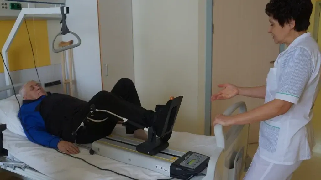 - Если всё идёт нормально, пациенту разрешают присаживаться на кровати и даже встать с опорой на костыли или ходунки уже на 3-4 день, но только в присутствии и под контролем специалиста.